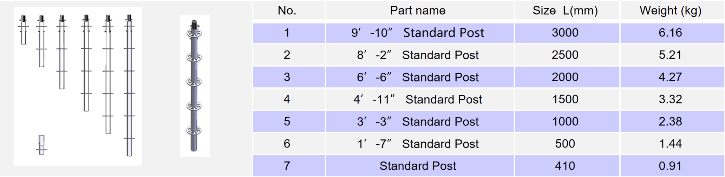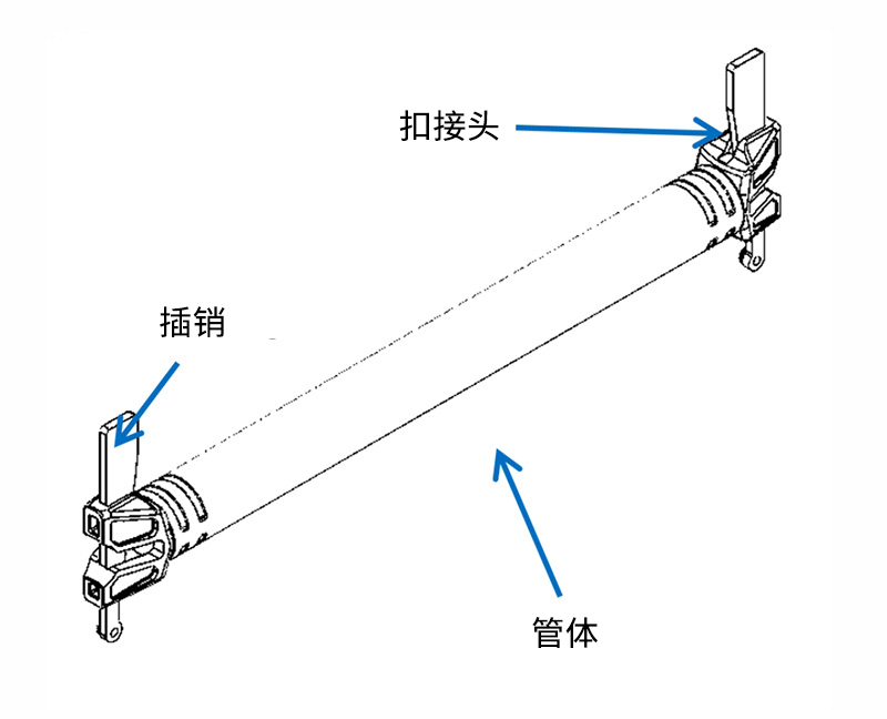 ① 管體材質(zhì)采用6061-T6; ② 兩端鉚接鑄件扣接頭,與立桿連接盤采插銷連接的水平桿。 ![]() |
