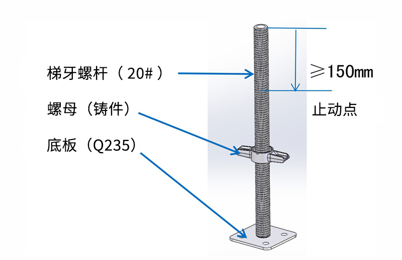 插入立桿底端可調(diào)節(jié)高度的底座。主要用于調(diào)節(jié)架體在不平整的環(huán)境進(jìn)行調(diào)節(jié)。 |