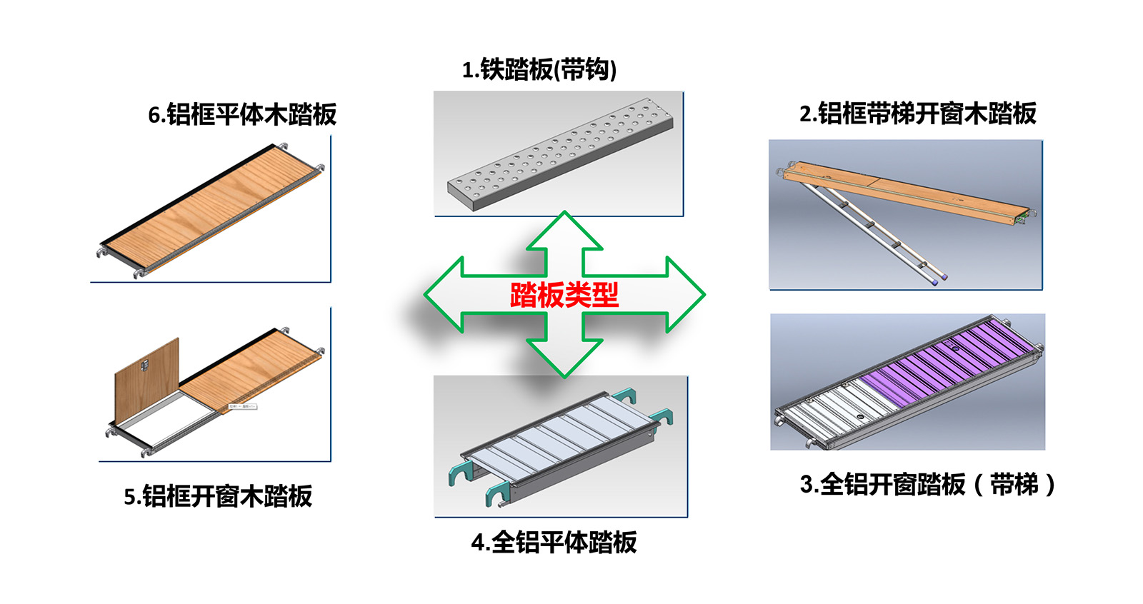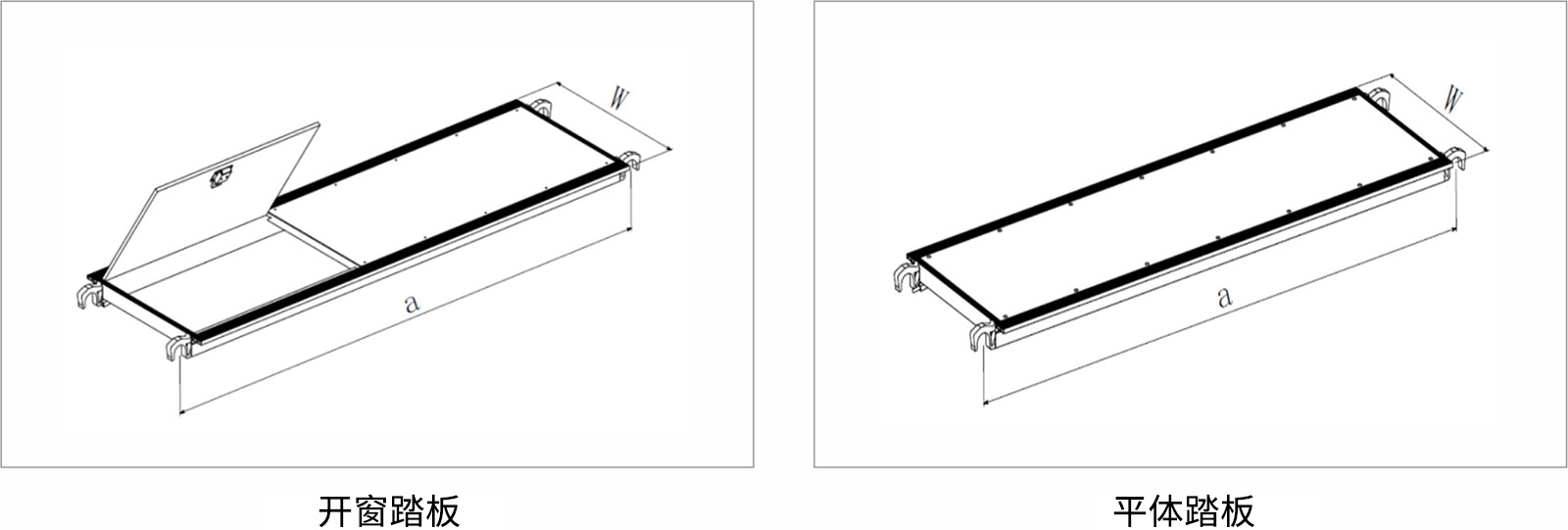 裝配在水平桿上,作為施工或承托物品的工作平臺。采用鋁框+ 木防滑膠合板制作,且自帶防風(fēng)、開窗功能。 踏板寬度有300和600兩種,長度600~3000,每個300一種規(guī)格。 |
