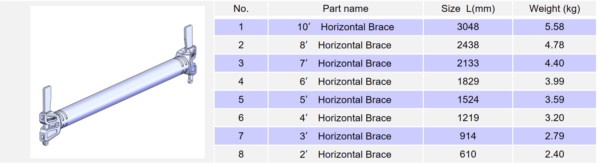 ① 管體材質(zhì)采用6061-T6。 ② 兩端裝配有轉(zhuǎn)動扣接頭,與立桿連接盤采用插銷連接的斜向桿件。 |