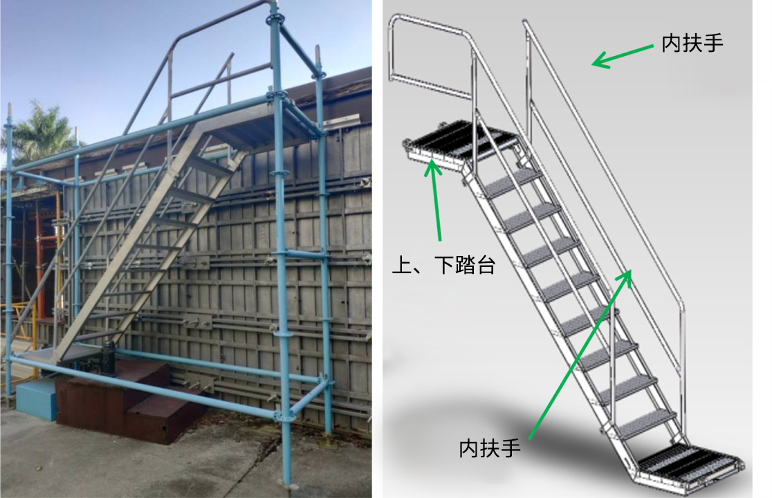 結(jié)構(gòu):梯踏臺,梯腳踏板、側(cè)梁組合焊接型;+內(nèi)、外扶手組成。 優(yōu)點:跨度度400-800、承載高、安裝快速。 |