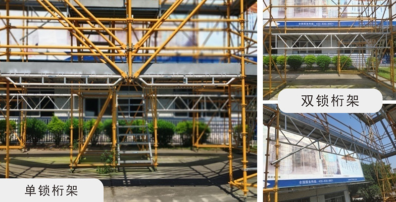 由上下弦桿焊接組成的與立桿扣件的水平加強桿件,用于腳手架跨空位置。 作用:(施工)人行、車通道、飛機、輪船、設(shè)備維修等等。 |