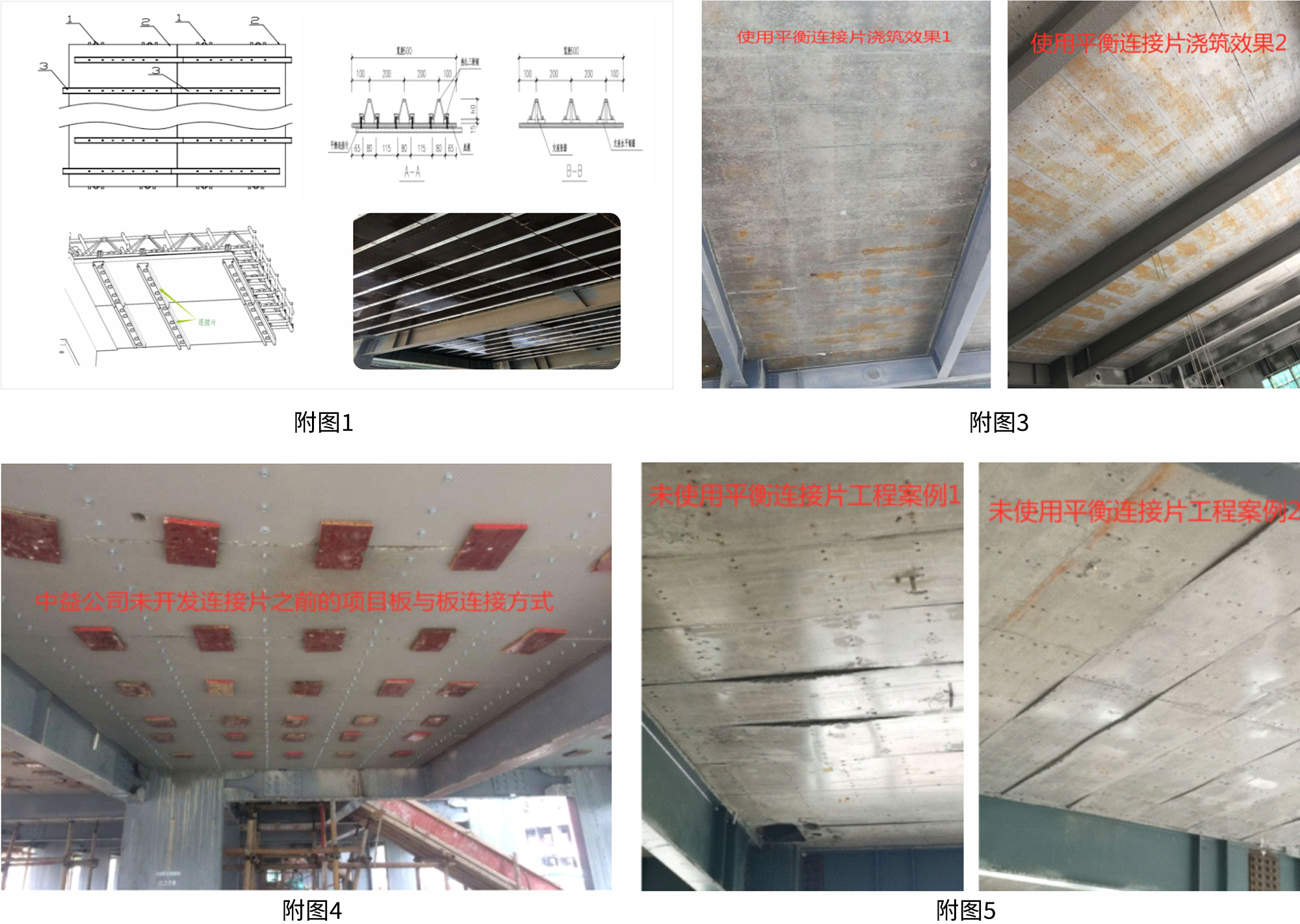 (3)從澆筑完后的效果對比:可拆式樓承板原來鋪裝完成后,在沒有連接片的時候采用的是下面用模板打 自攻螺絲,使板與板之間連接成一個整體平面(見附圖四),這樣的施工效 率低下,成本高, 澆筑后質(zhì)量不能保證,這是某公司無連接片澆筑混凝土后 的效果見(附圖五),所以自從中益/泰博的裝配可拆式鋼筋桁架樓承板的底 部連接片技術(shù)開發(fā)以后(中益/泰博自主研發(fā)的專利技術(shù)),底部每 400mm間 距的有一檔平衡連接片(見附圖一)交叉錯位連接,防止了板與板之間的錯位 ,使得板面之間能成為一個平面,保證了樓板底部的平整度,并且提高了施 工速度,質(zhì)量做到無需二次抹灰,可直 接移交裝修。(見附圖三)