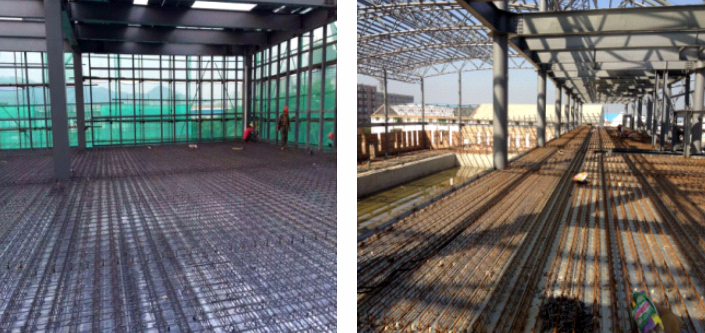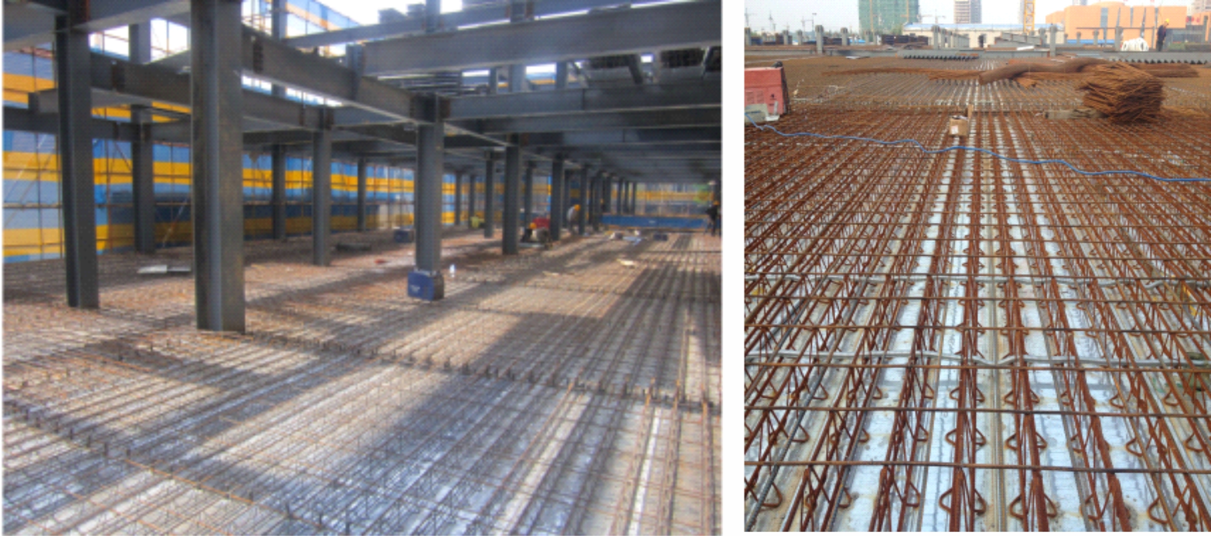 裝配可拆式鋼筋桁架樓承板,實(shí)際案例(龍湖集團(tuán)浙江公司紫荊港項(xiàng)目)6-7 人一天可鋪裝1000㎡(見附圖二),可有效縮短工期比自承式樓承板的安裝 快百分之三十的速度,拆除比較方便,1400㎡ 的板面6人一天即可拆除完畢。 |